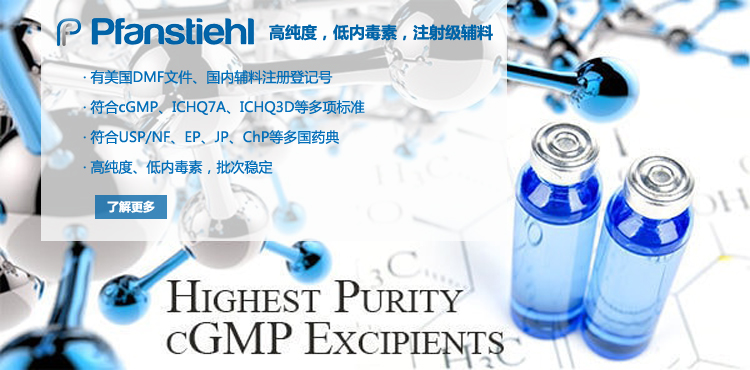 “熱烈祝賀Pfanstiehl的注射級甘氨酸Glycine(G-140)喜獲CDE登記號F20250000403, 這是Pfanstiehl產品獲得的第18個CDE登記號!”甘氨酸在醫藥輔料制劑中應用廣泛,, 可作為緩沖劑,增溶劑,穩定劑等,具有諸多優勢。Pfanstiehl秉承一貫高品質理念,為滿足全球生物制藥行業對于高品質甘氨酸的需求,隆重推出的注射級甘氨酸Glycine (G-140), 具有超高純度,超低內毒素,超低金屬殘留的特點,單獨檢測29種金屬離子,并且新增DNA,RNA,DNA酶,RNA酶和脂肪酶,亞硝酸鹽等多項質量指標的檢測,符合多國藥典規定(USP, EP, BP, JPE, ChP),可用于生物治療性藥物和疫苗的生產。產品信息:· 產品名稱:Glycine, High Purity, Low Endotoxin, Low Metals, USP, EP, BP, JPE, ChP (G-140)· 中文名稱:甘氨酸· 分子式:C2H5NO2· 分子量:75.07 g / mol· CAS號:56-40-6· 產品貨號:G-140產品特點: · 超高純度,超低內毒素,超低微生物含量,超低金屬雜質殘留· 質量指標新增DNA,RNA,DNA酶,RNA酶,脂肪酶和亞硝酸鹽檢測· 符合多國藥典:USP, EP, BP, JPE, ChP· 符合ICH Q3D標準· 符合GMP標準· 已獲DMF和CDE登記號 產品應用:· 緩沖劑· 穩定劑· 增溶劑如果您對Pfanstiehl注射級別Glycine G-140感興趣,歡迎聯系Pfanstiehl 中國區代理商北京西美杰科技有限公司獲得如下詳細的產品概況說明文件和測試樣品。Pfanstiehl Inc.最新產品系列如下,歡迎聯系北京西美杰科技有限公司獲取100g裝免費樣品。北京西美杰科技有限公司為Pfanstiehl中國代理,為客戶提供完善的技術支持與售后服務。歡迎撥打西美杰客服電話400-050-4006或者登陸網站www_xmjsci_com.bgmeqp.pro了解更多信息。 更多>西美杰介紹